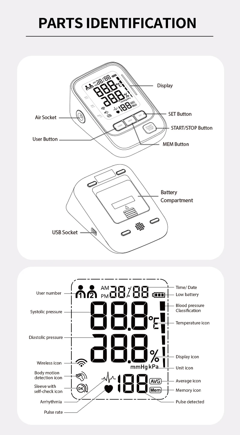 Fully Automatic Arm Style Medical Electronic BP Digital Blood Pressure Machine for Hospital Home with USB Voice Large Cuff