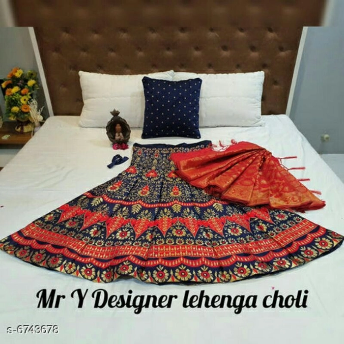 Abhisarika Fabulous Women Lehenga Topwear Fabric: Satin Bottomwear Fabric: Satin Dupatta Fabric: Net Set type: Choli Sizes: Semi Stitched (Lehenga Waist Size: 38 in Lehenga Length Size: 42 in) Country of Origin: India