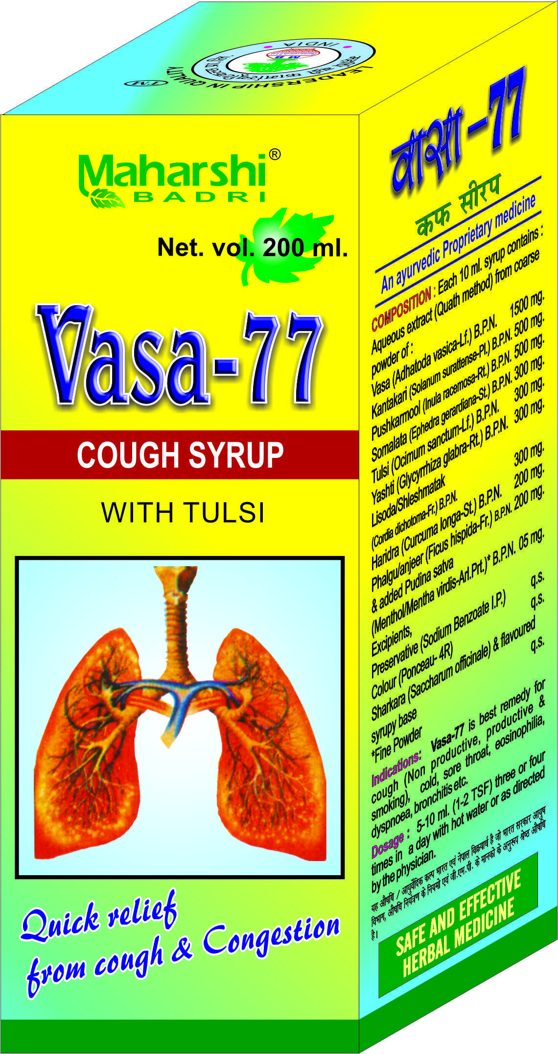 MAHARSHI BADRI PHARMACEUTICALS PVT. LTD Vasa 77 Syrup 200 Millilitres